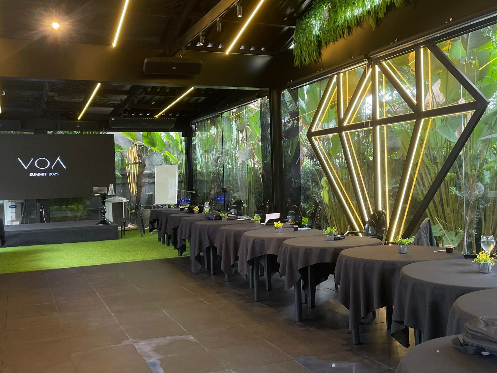 Projetado para eventos intimistas, corporativos e sociais, o espaço reúne tudo o que você precisa para proporcionar experiências marcantes: um jardim interno acolhedor, cozinha gourmet completa, salas amplas e climatizadas, estrutura tecnológica com painel de LED e palco, além de áreas perfeitas para confraternizações e encontros estratégicos. Para produções profissionais, contamos ainda com sala de gravação e camarim, garantindo suporte total para conteúdos, apresentações e eventos híbridos.
