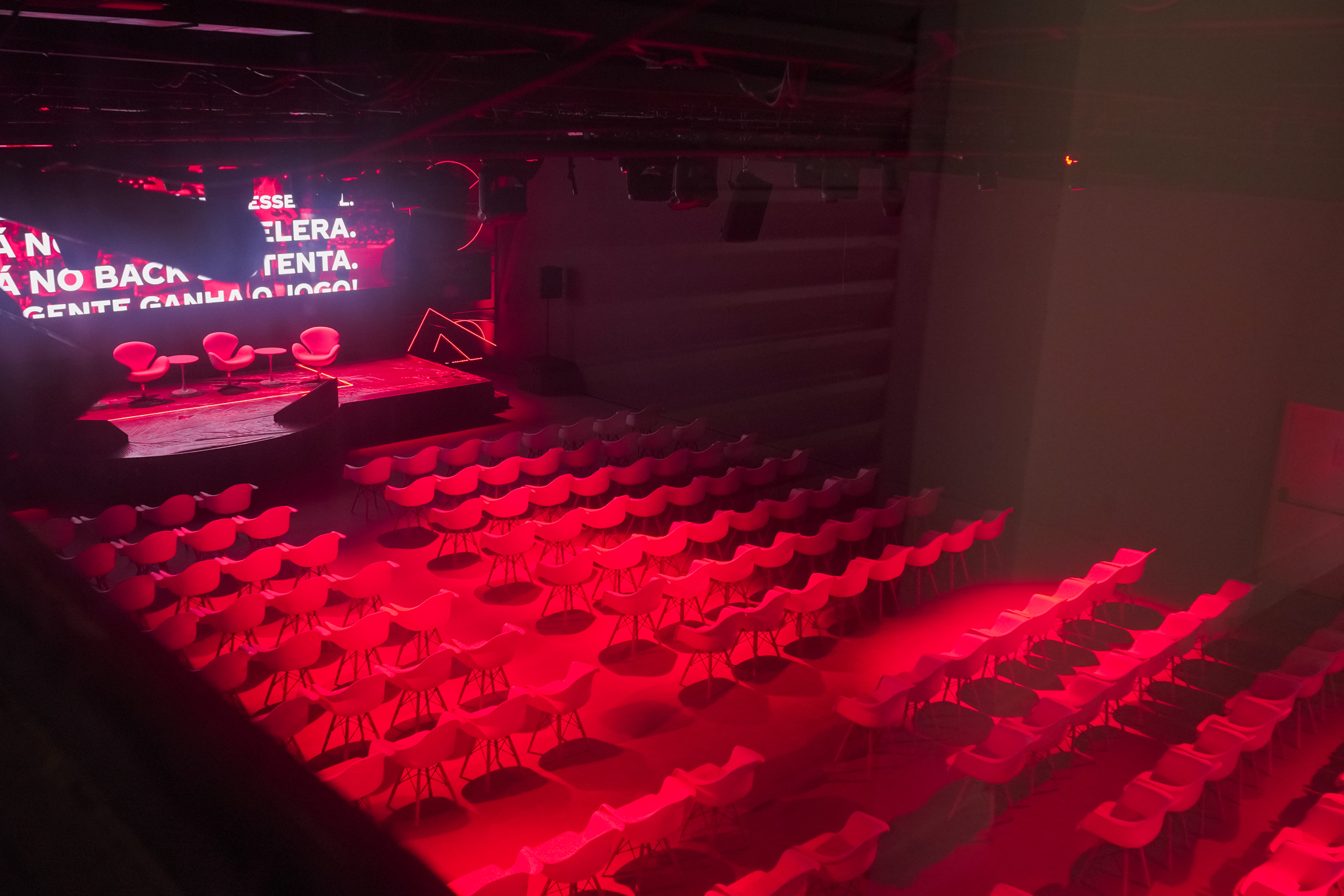O Espaço Cosmos possuí isolamento acústico com dupla parede de 70cm, acesso ao foyer, house técnica no 2º andar, 2 camarins com entrada secreta, 100% acessível, totalmente climatizado e porta corta fogo.