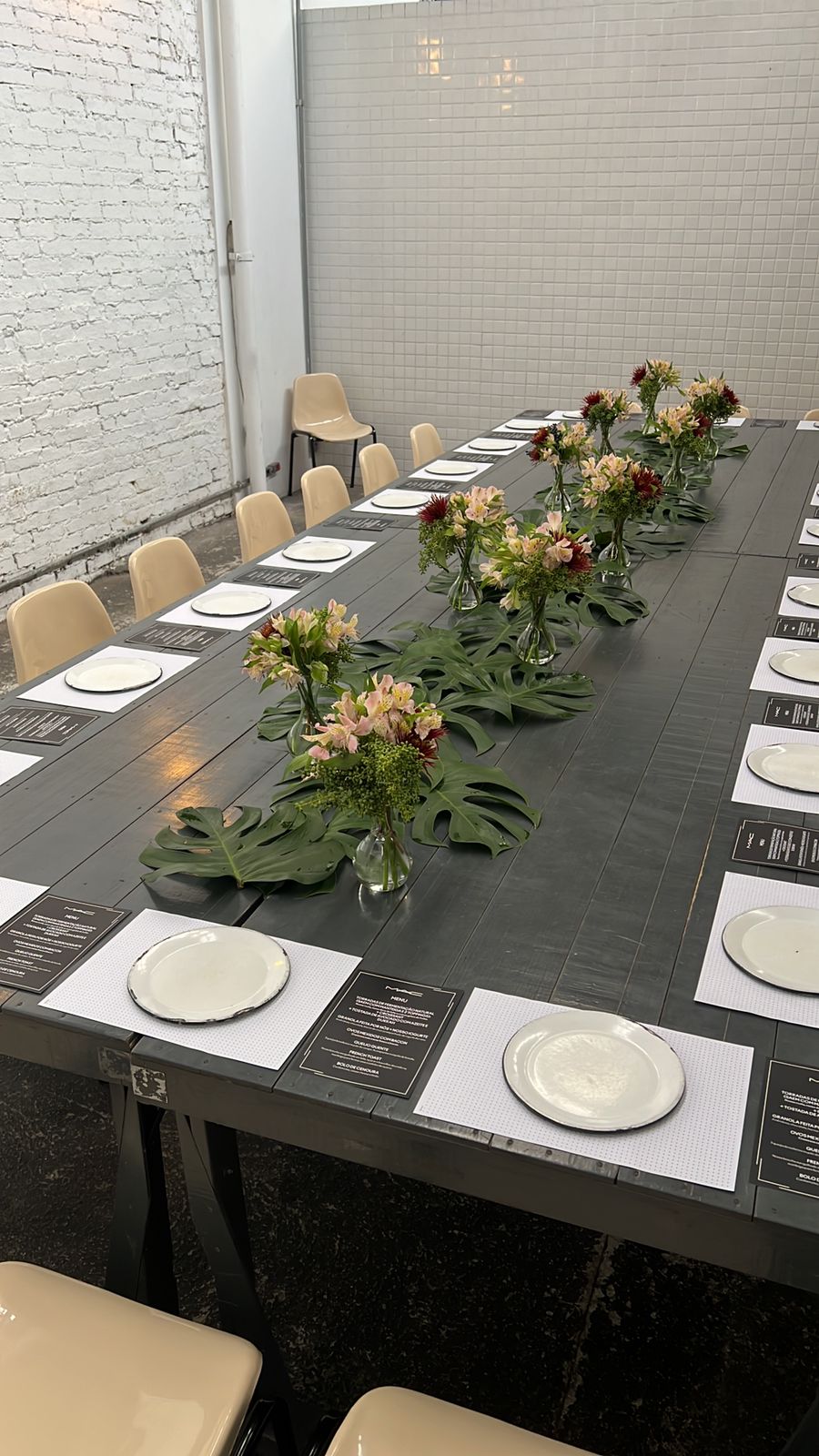 Nosso espaço de eventos é um galpão de 80 metros quadrados e nele cabem até 70 pessoas em pé, com serviço volante ou 40 pessoas sentadas para um jantar, por exemplo.