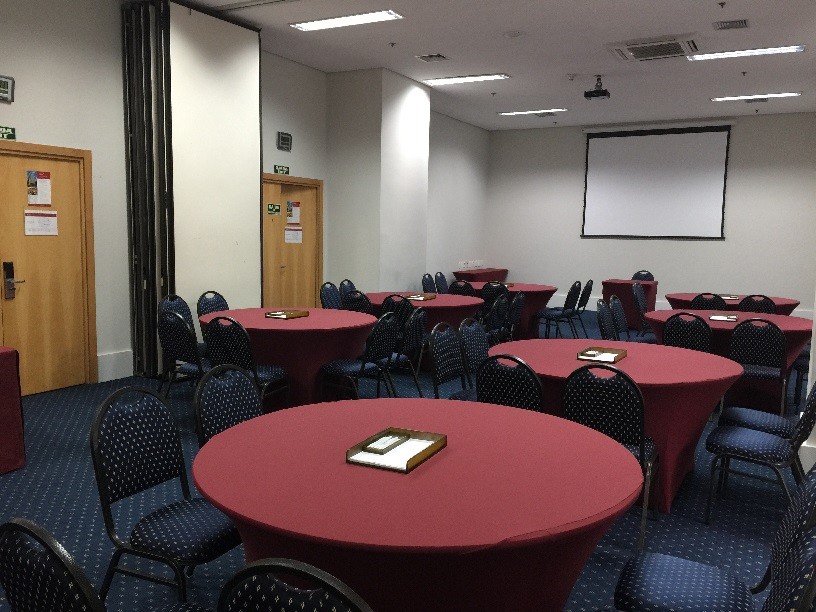 O hotel possui um amplo foyer para recepção, coffee breaks, cocktails e também um Lounge com cobertura retrátil, que possibilita momentos ao ar livre, que pode ser conjugado com o Restaurante Rubi, para aumentar a área e comportar até 190 pessoas. 09 salas no total, sendo 7 salas com paredes removíveis e adaptáveis.