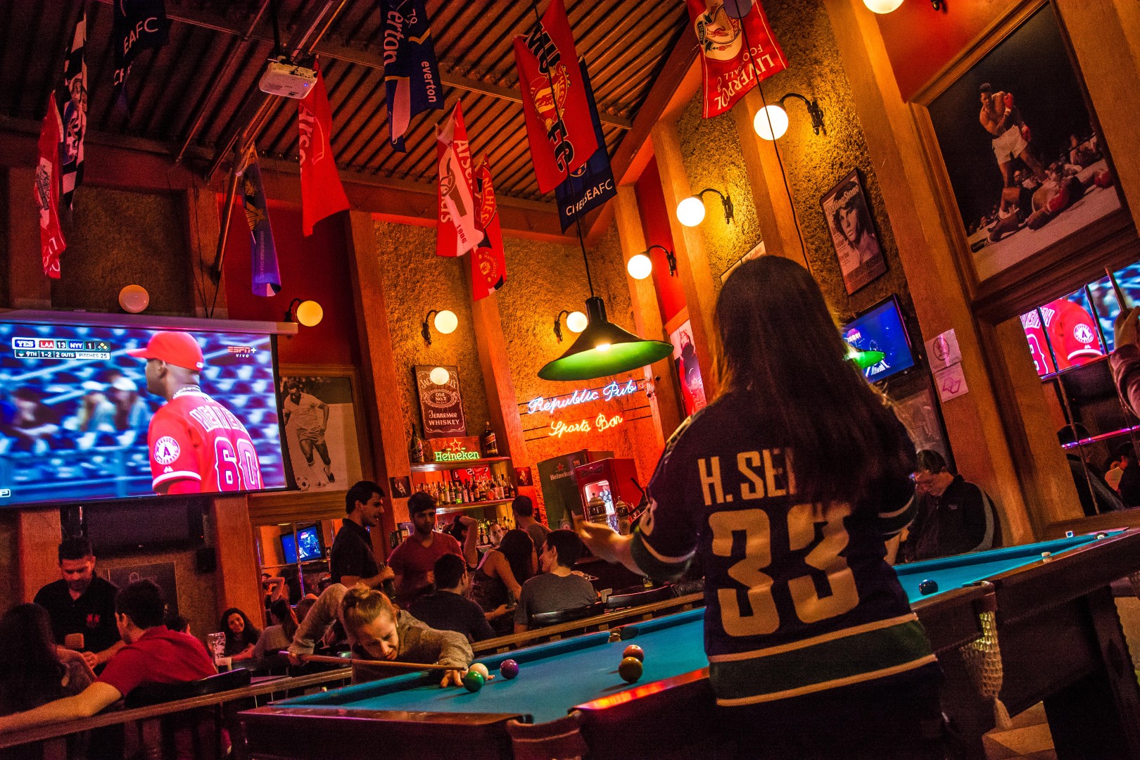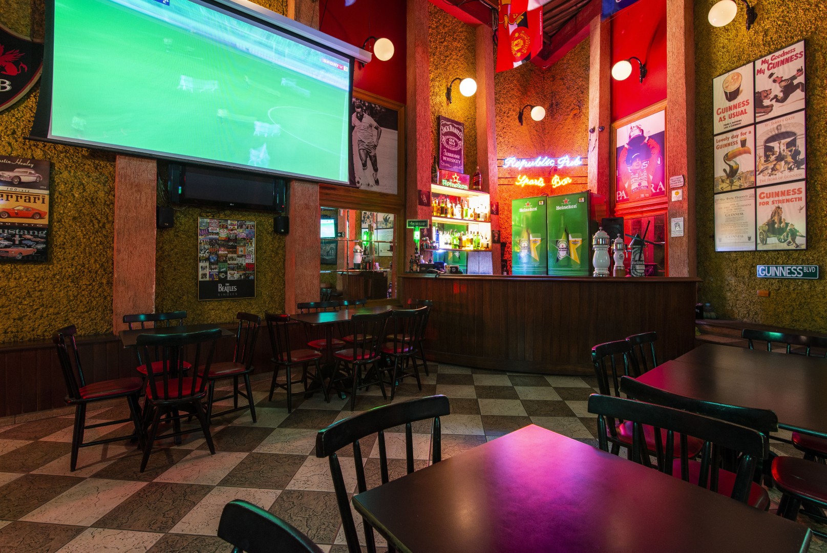 O Republic Pub é um espaço versátil com diversas possibilidades. Um local onde você pode realizar eventos diferentes, desde pequenas reuniões até uma confraternização para uma grande equipe. Possui um evento para até 80 pessoas? Que tal realizá-lo no nosso Sports Bar? Esse ambiente, que pode ser reservado exclusivamente, conta com mesas, bancos, televisões, telão e projetor e bar próprio. Além do som ser independente do restante do bar. Conheça nossas opções e cardápios!