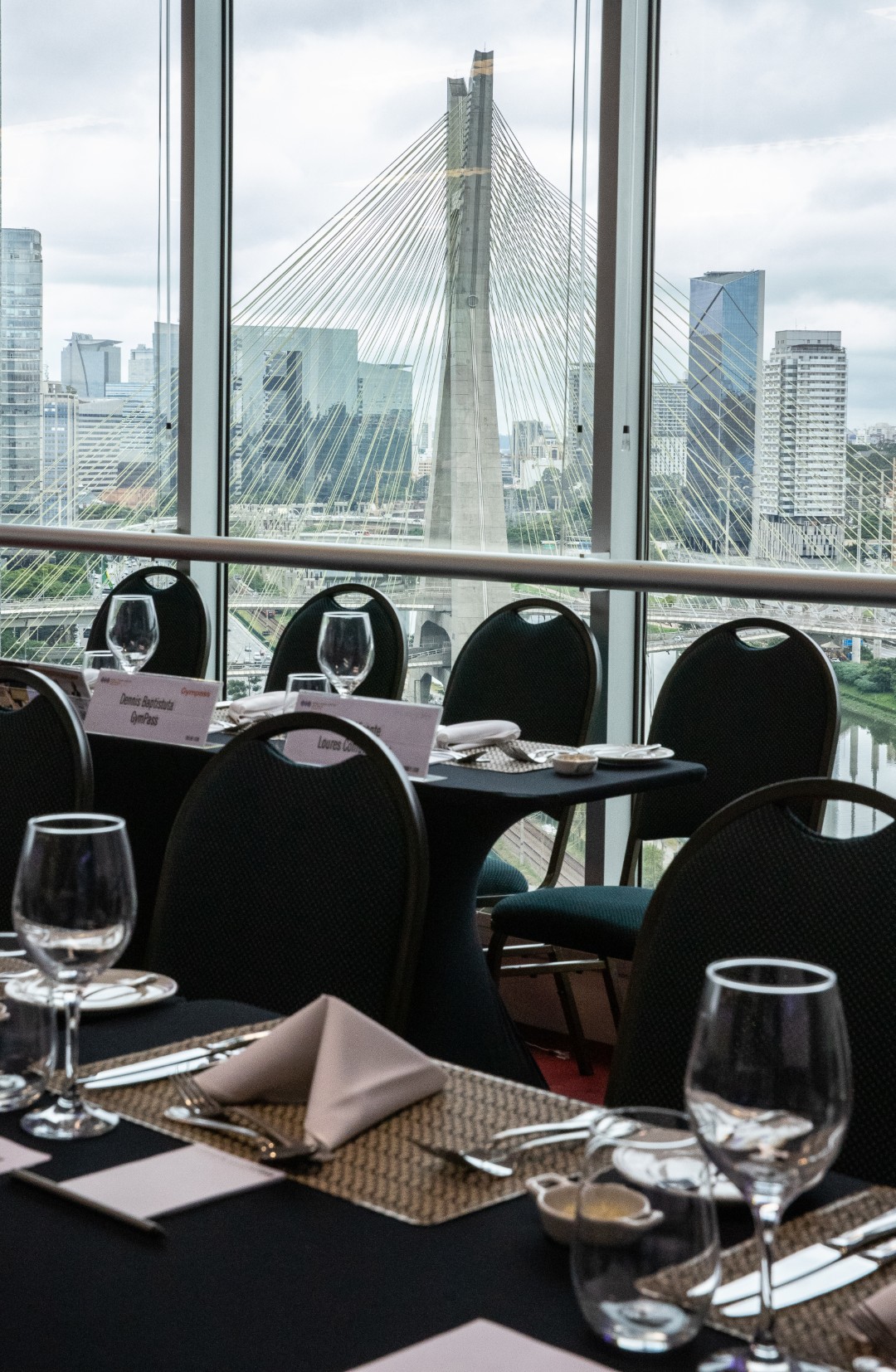 Espaço de 150m² para eventos corporativos. Comporta até 120 pessoas em formato auditório, entre outros formatos.