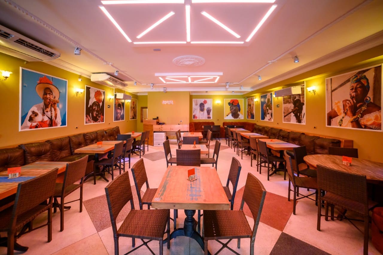 O bar possui uma generosa área a céu aberto e proporciona a imersão dos clientes a um embiente natural, como se estivessem em um bar pelas ruas de Havana, Cuba.
