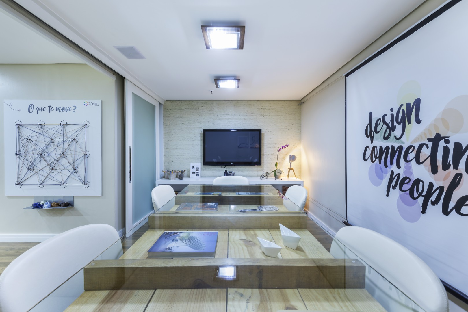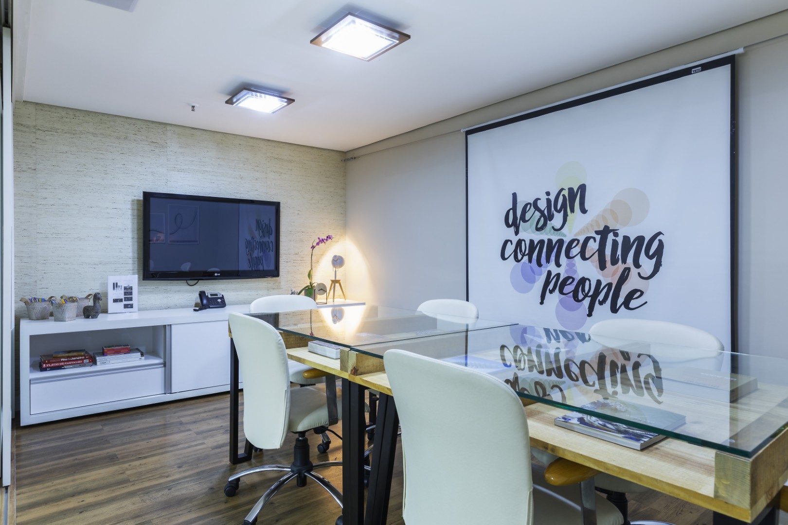 Nossa sala de reunião possui capacidade para 6 pessoas e é equipada com cadeiras executivas, wifi, ar condicionado, Tv, home theatre, Apple TV e Flipchart. A locação inclui o serviço de copa, com água, café e chá à vontade.