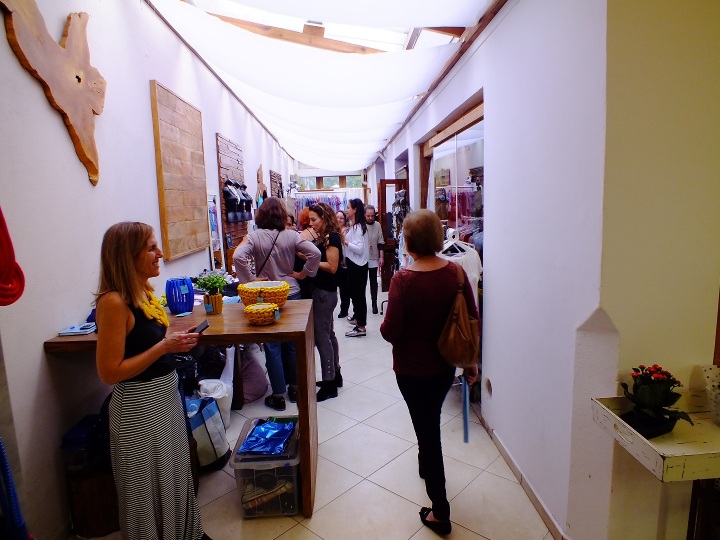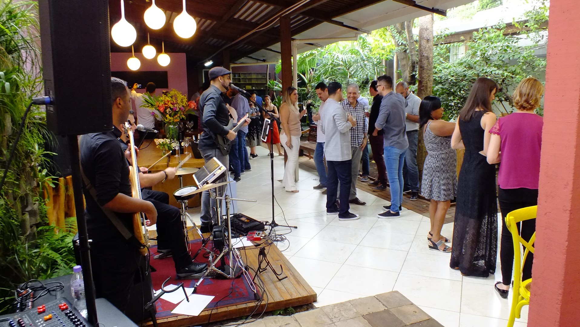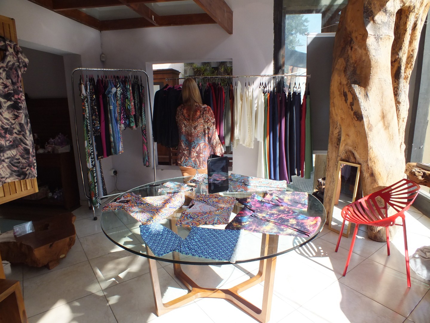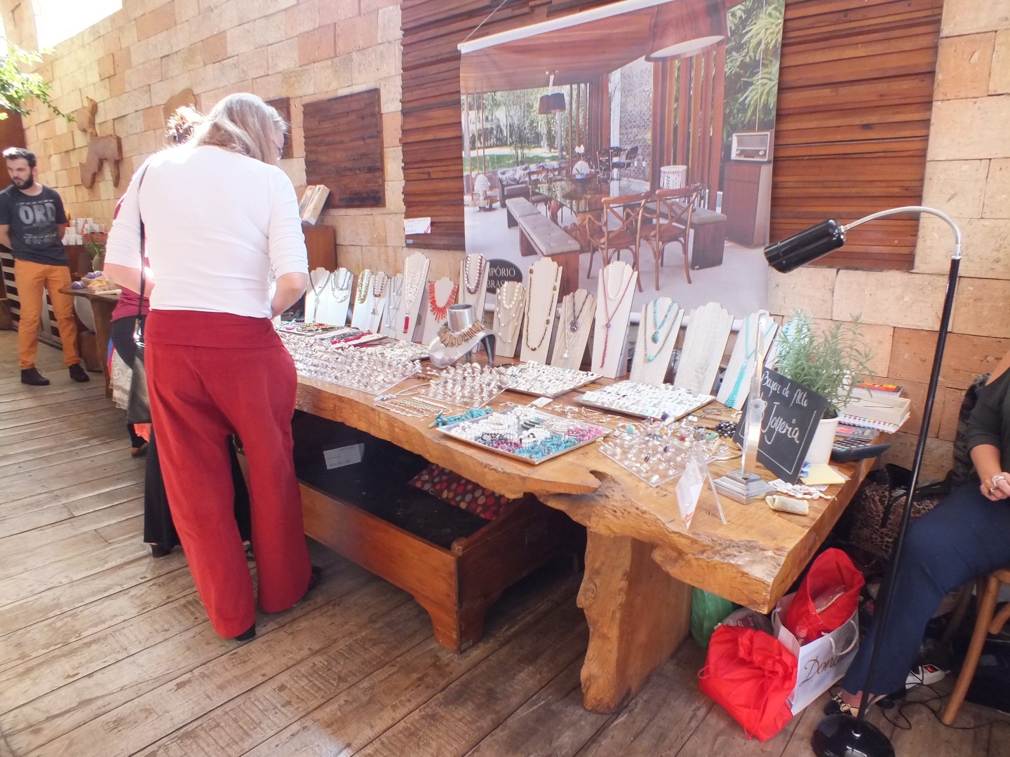 Este é o nosso espaço, verde, madeira, tijolos de barro, luz natural, móveis orgânicos.