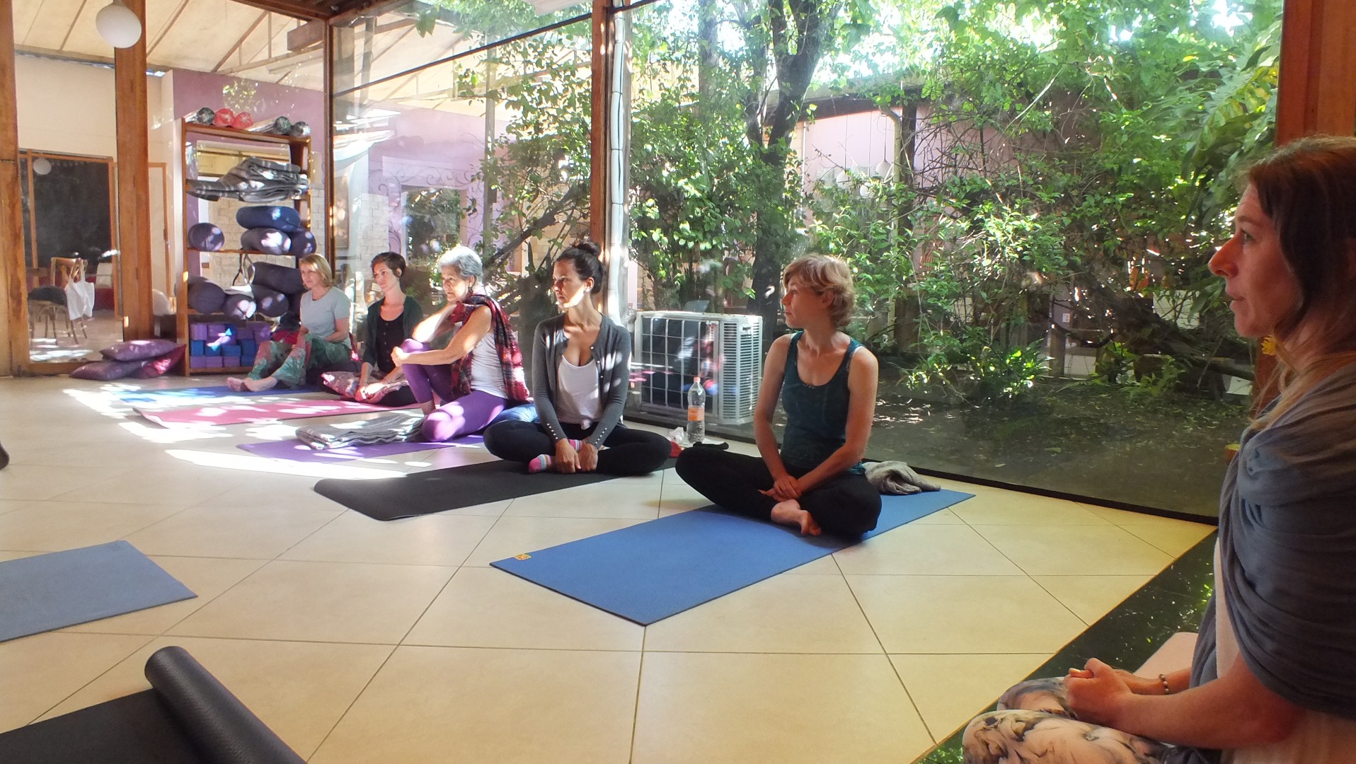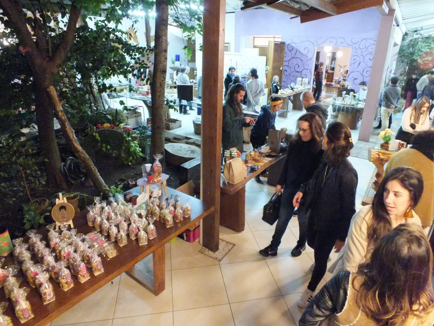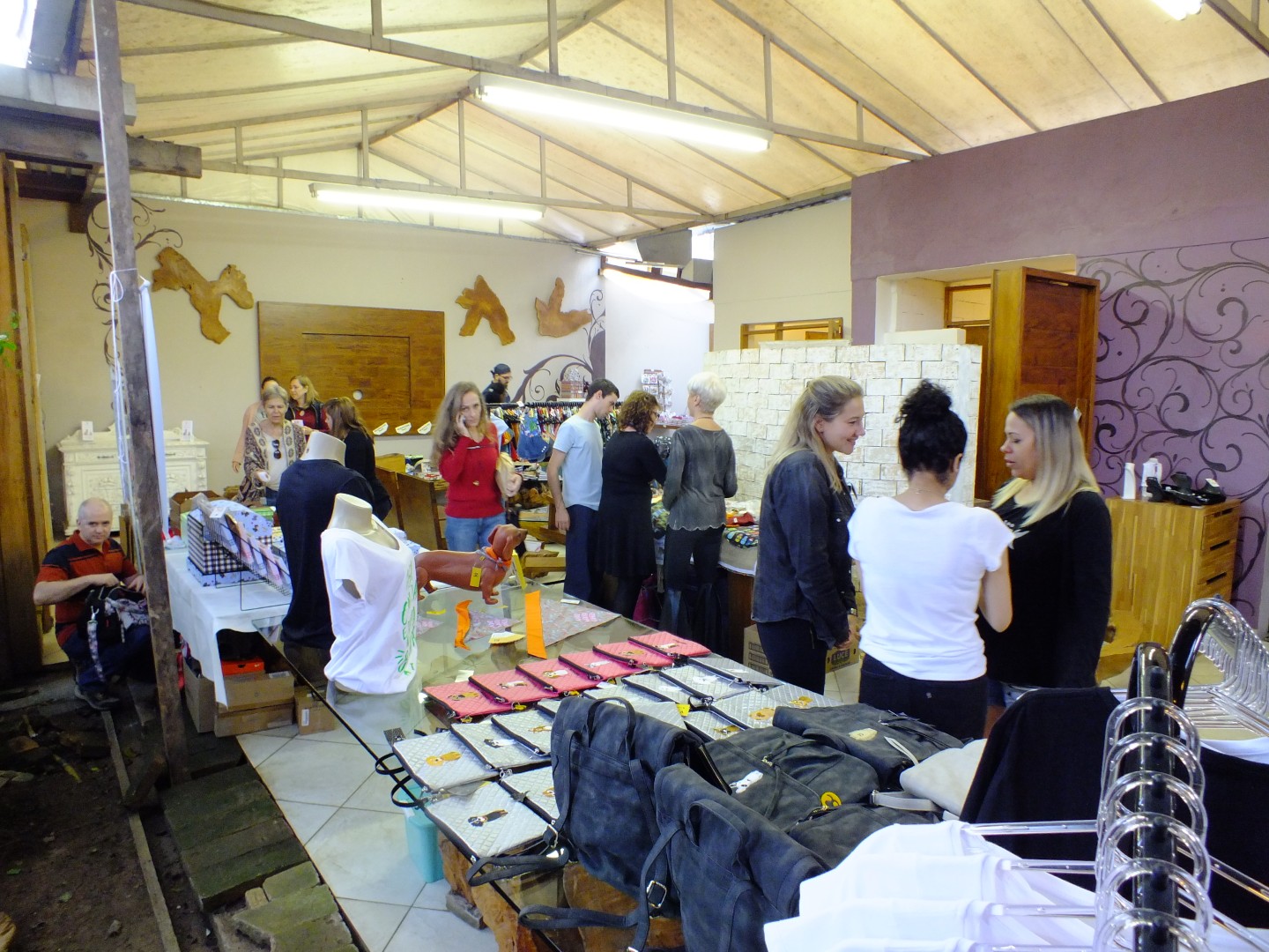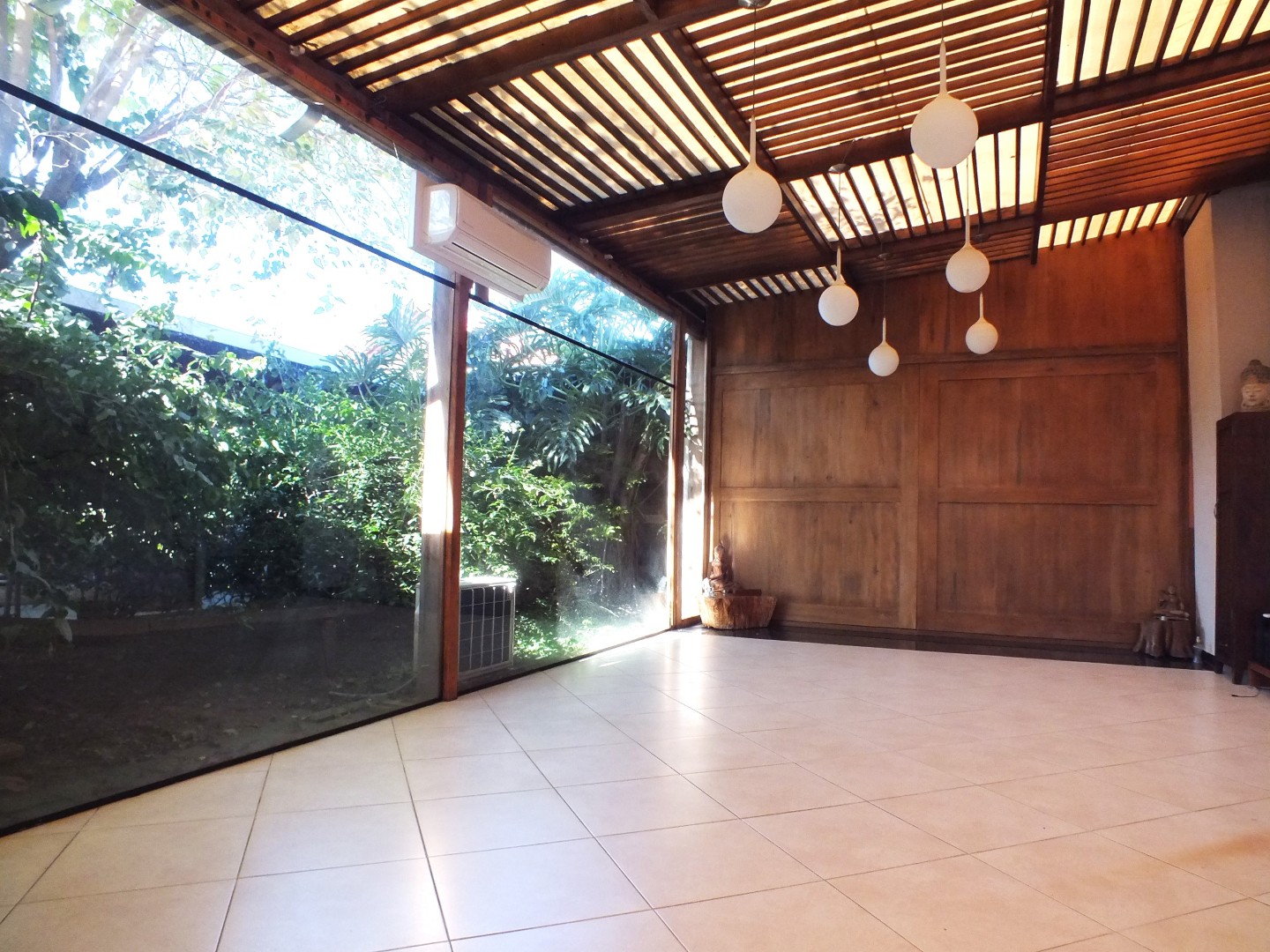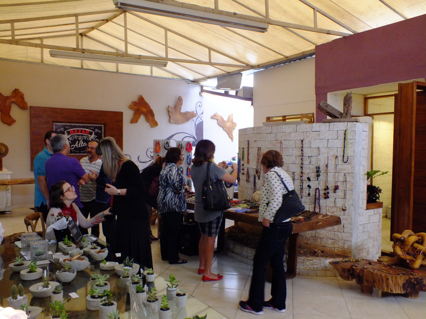 Este é o nosso espaço, verde, madeira, tijolos de barro, luz natural, móveis orgânicos.