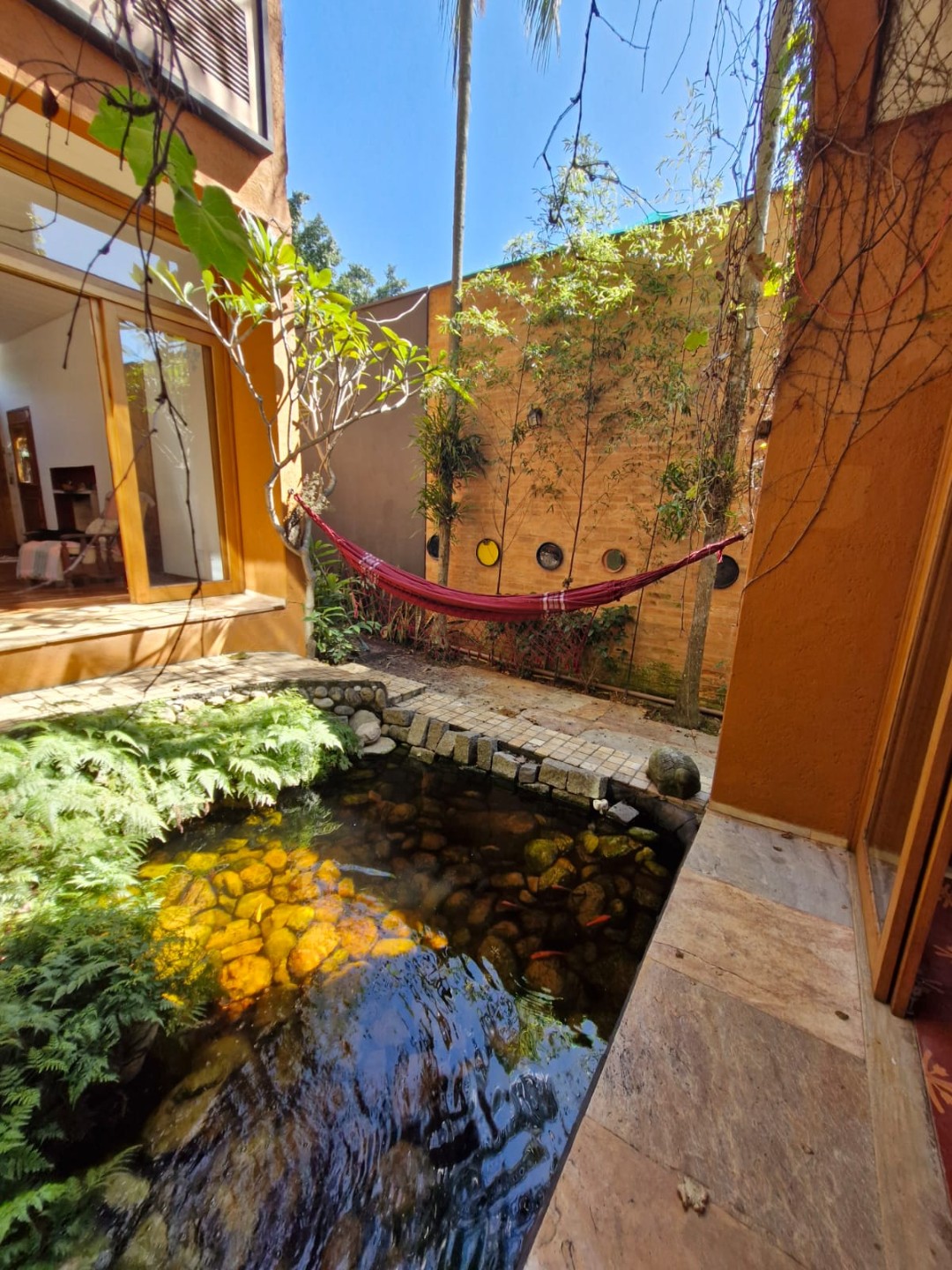 Entre mangueiras, jabuticabeiras no silêncio do jardim, idealizado pelo anfitrião e ceramista mineiro, tendo o Museu de Inhotim como inspiração, esquecemos que estamos na maior cidade do país.