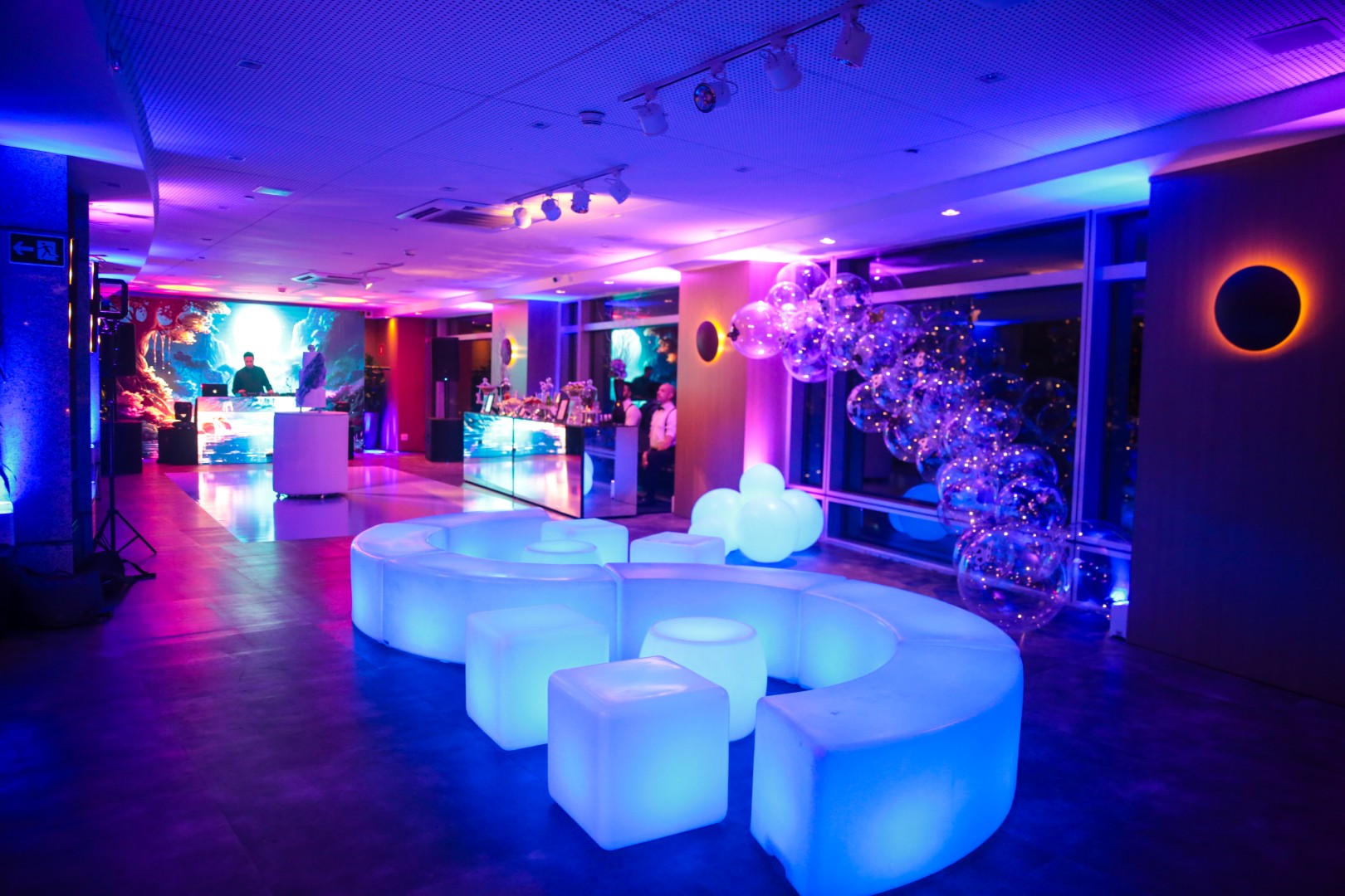 O espaço é versátil e aconchegante, e conta com um jardim interno iluminado pela luz natural, que proporciona um toque especial. Tem mobiliário próprio, o que torna a preparação do evento ainda mais prática.