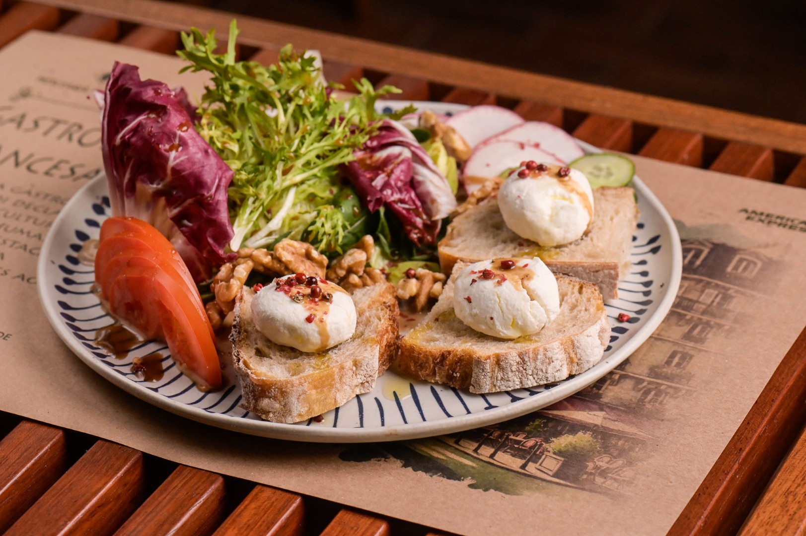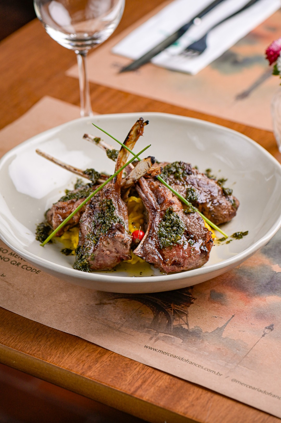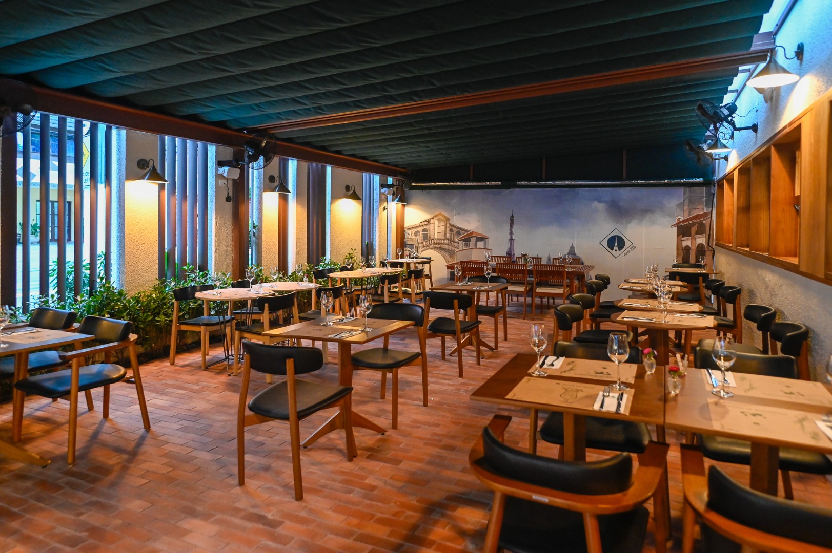 A ampla varanda é o lugar mais disputado do restaurante. A decoração clean, com pinturas em aquarela de produtos franceses, reflete um pouco da clássica cultura francesa, sem exageros.