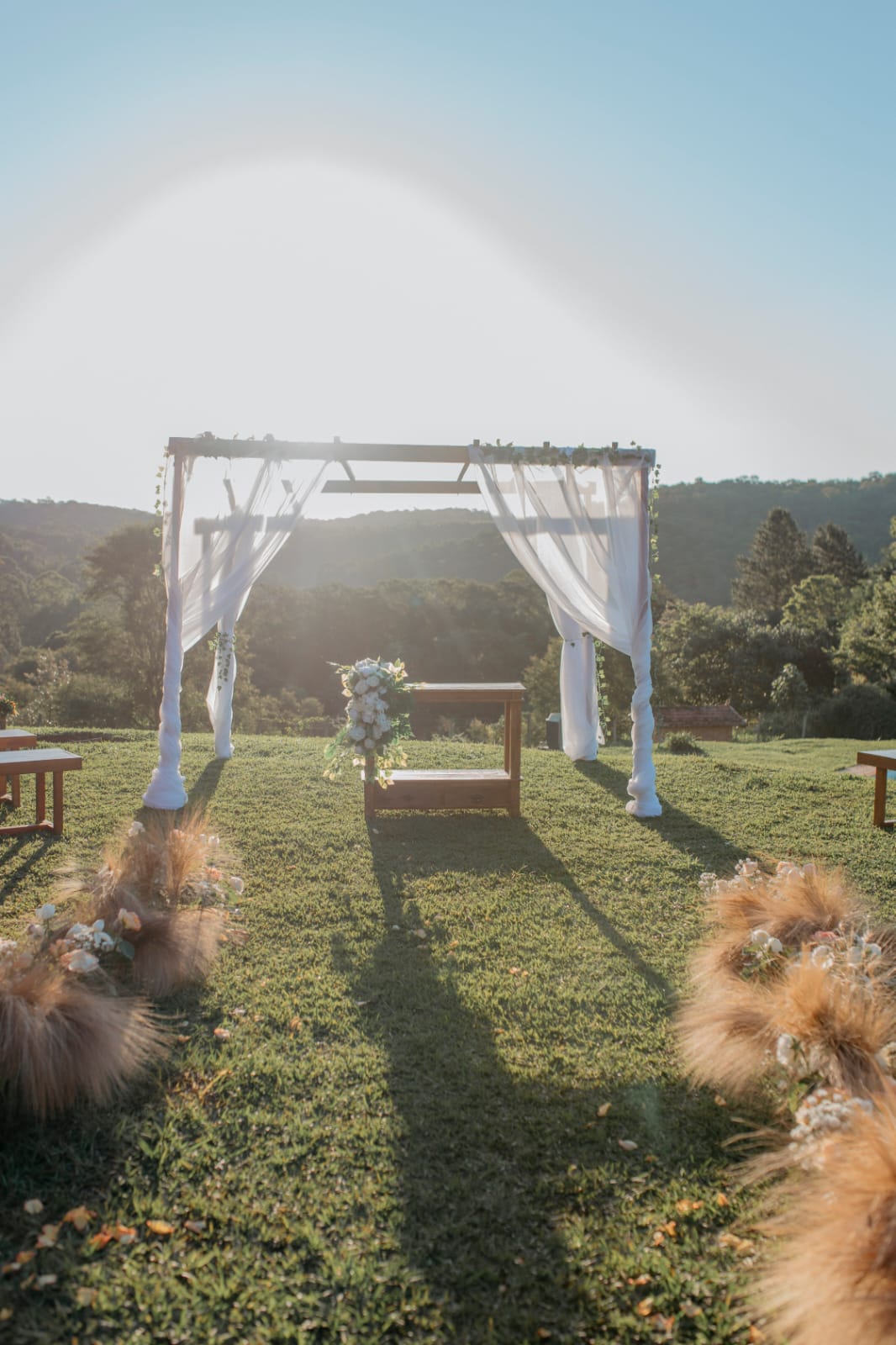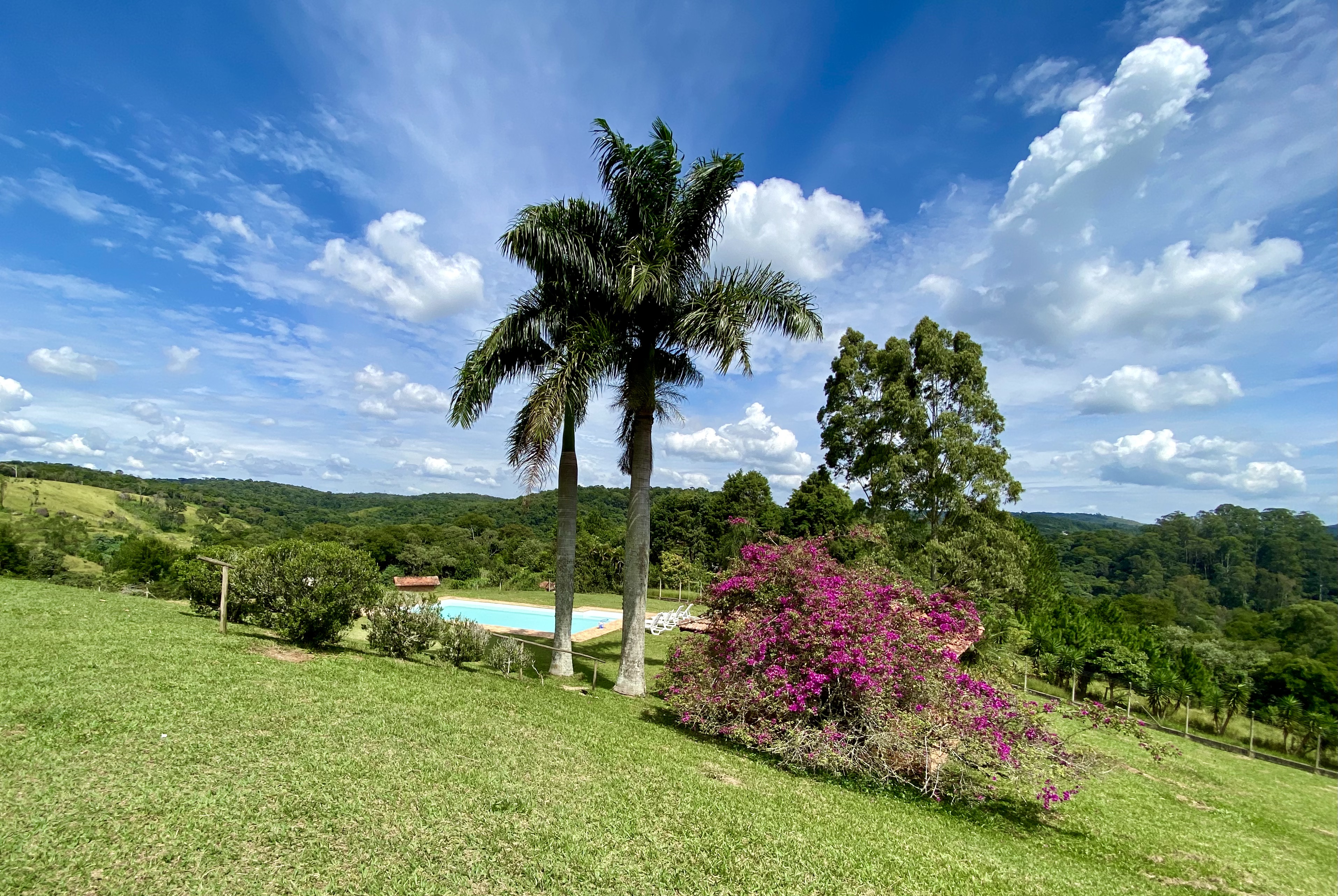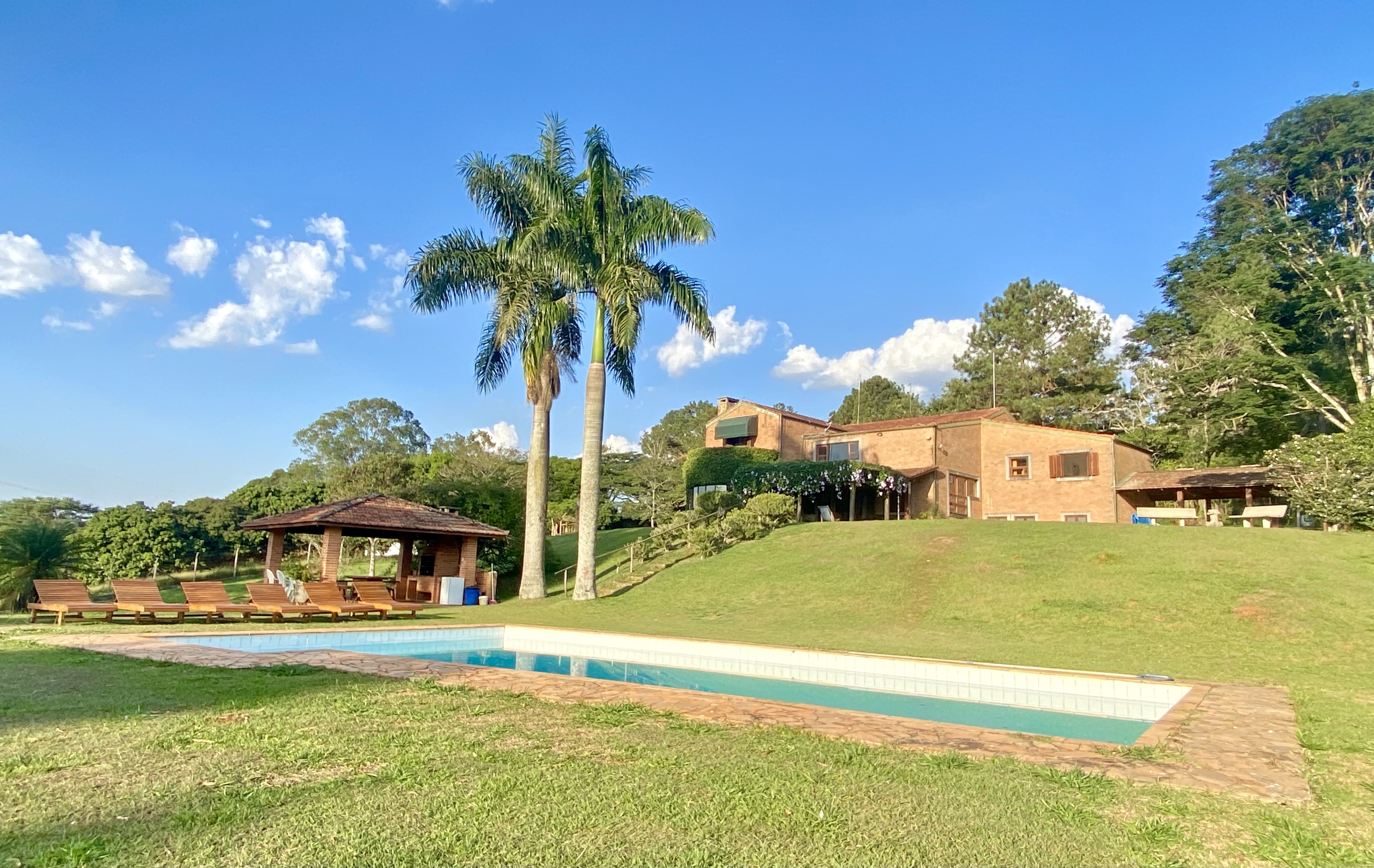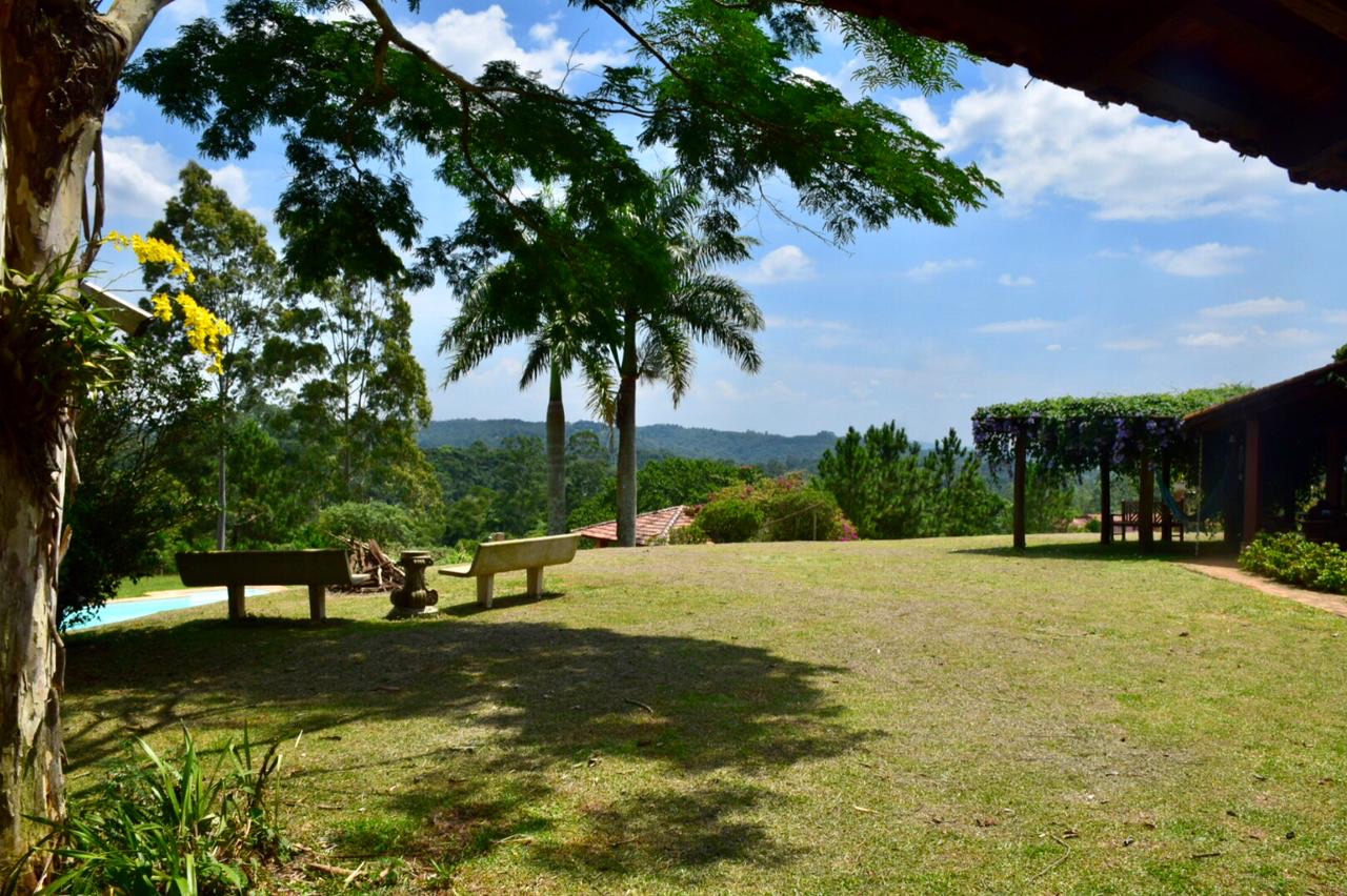 O Sítio Floradas, a 40 km de São Paulo, oferece um ambiente natural de 38.000 m² para eventos com até 150 pessoas. Possui jardim, piscina, churrasqueira e vista para mata preservada. A casa principal (500 m²) tem cinco suítes, salas versáteis, sauna e lareira. Ideal para casamentos, aniversários e eventos corporativos, conta com estacionamento, banheiros e cozinha equipada, combinando charme rústico e fácil acesso à capital paulista.