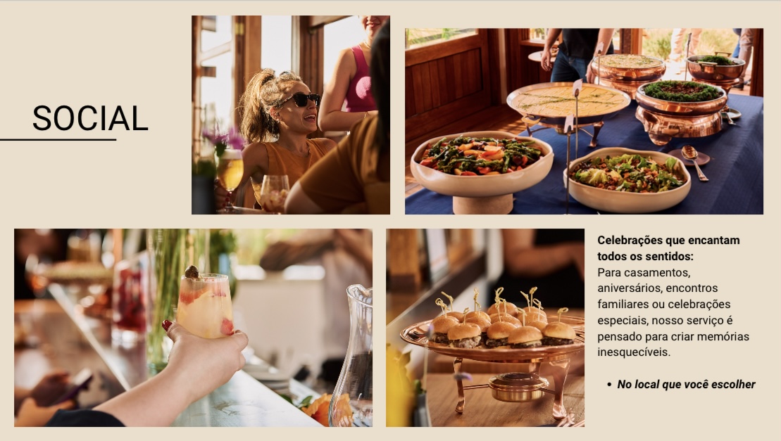 Cada cardápio é desenhado com curadoria respeitando as singularidade dos eventos. Uma maneira de levar até você um pouco de todo nosso propósito do campo direto para a mesa em três formas de surpreender: