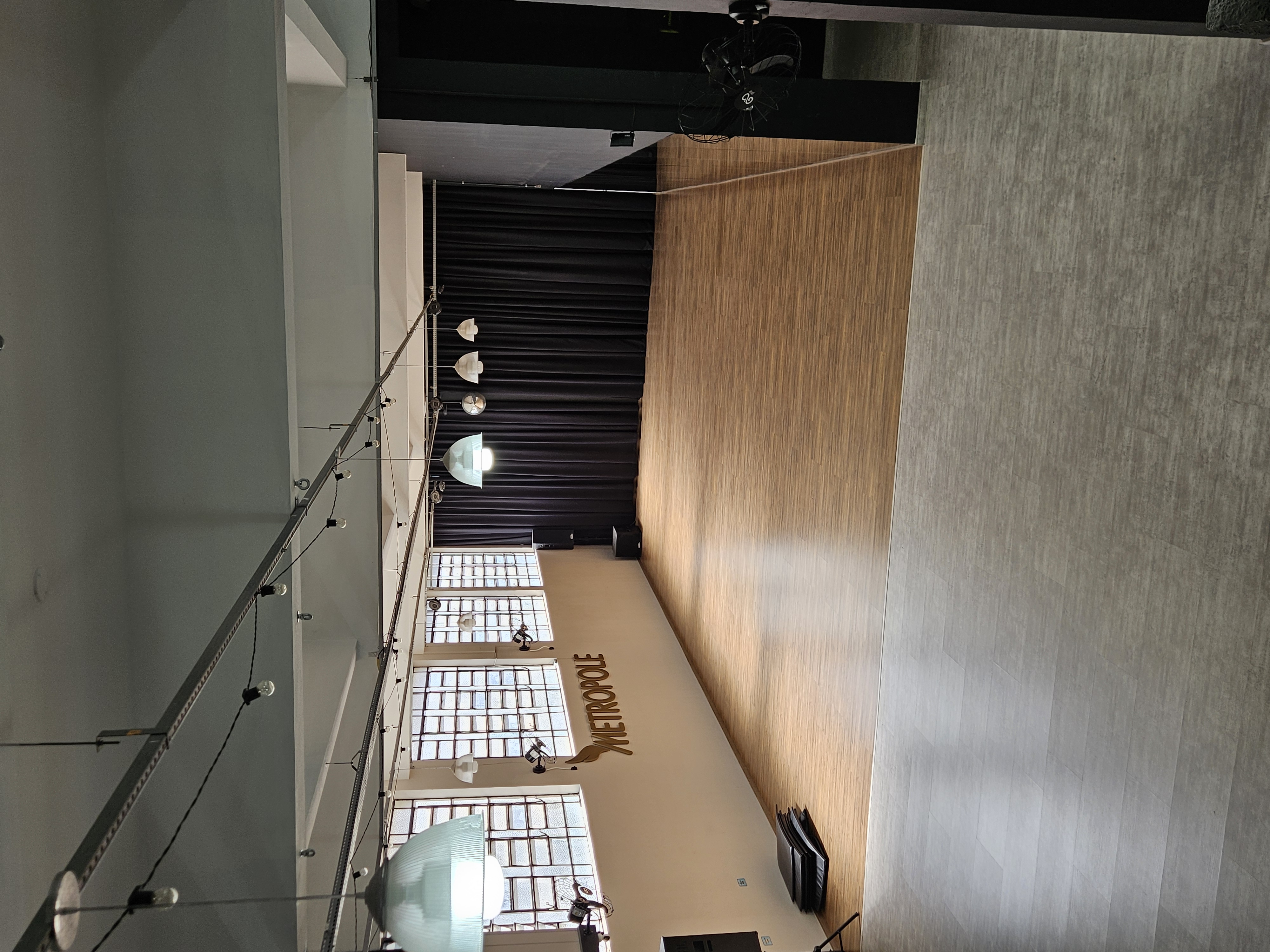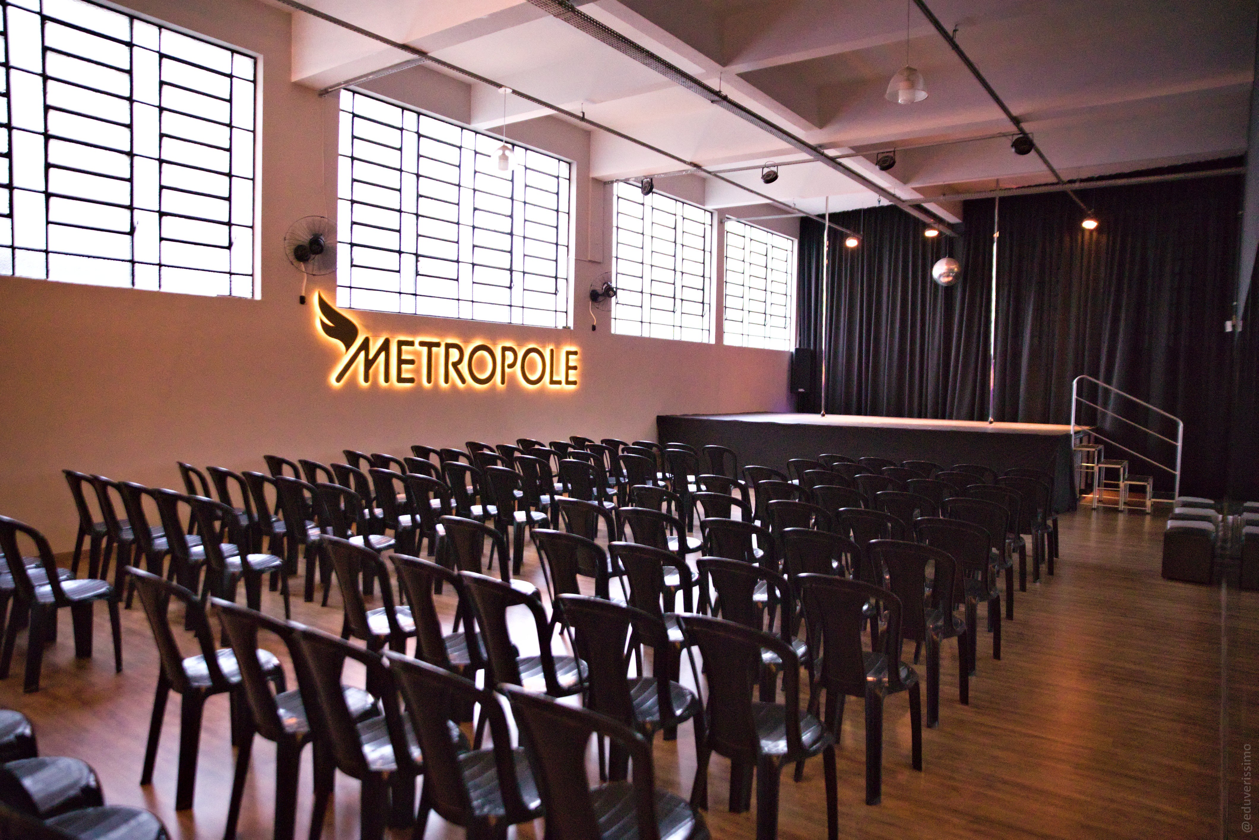 Disponibilidade de palco de até 24m², cadeiras, iluminação, sistema de som, camarim, banheiros.